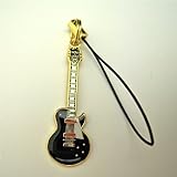 ギブソン・レスポール カスタム 黒 ギター スモール 携帯ストラップ Custom Guitar Cell Phone Strap